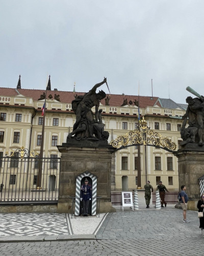 A várat a Hradzsin tér felől közelítettük meg, majd a palotát balról kerülve jutottunk be a látogatható területekre.